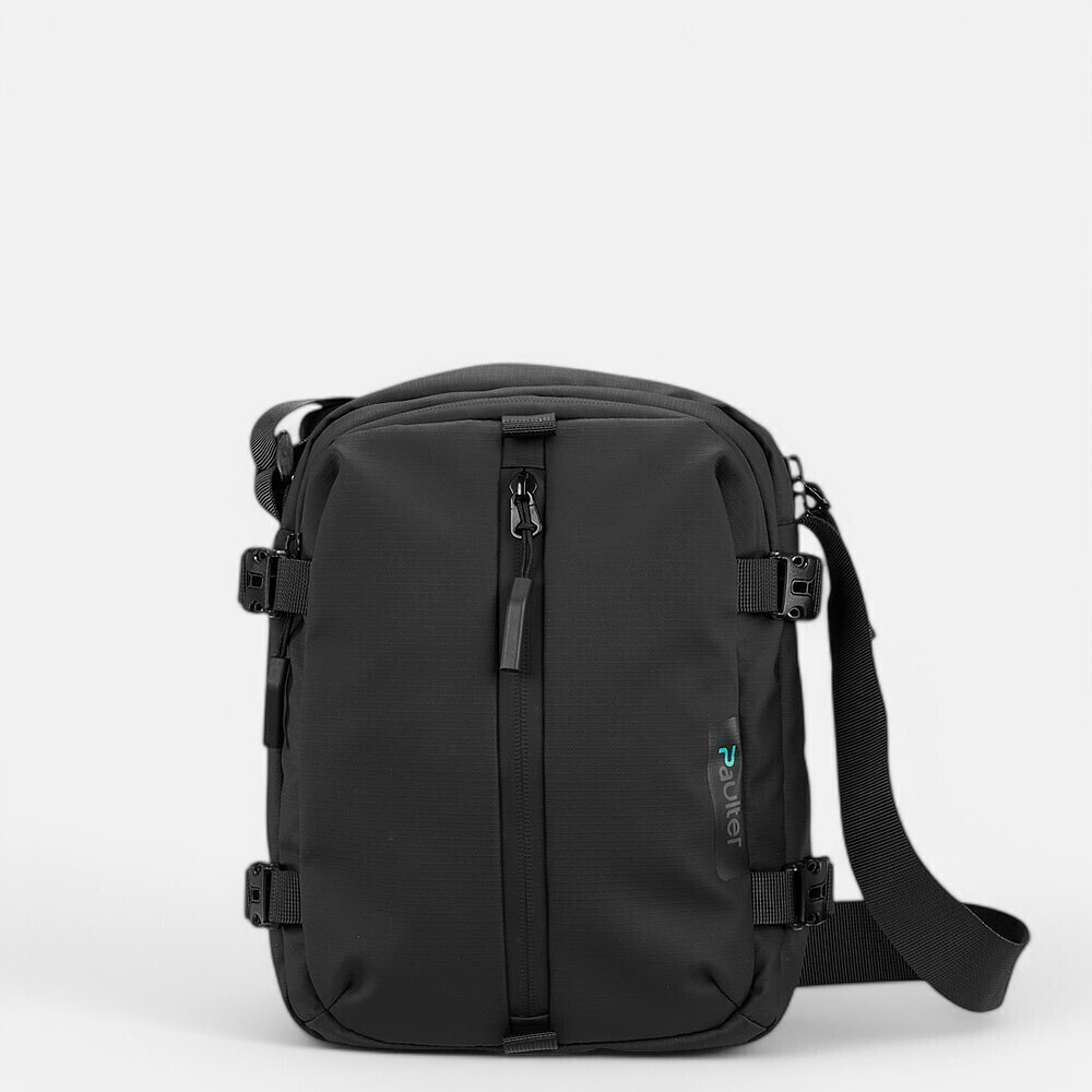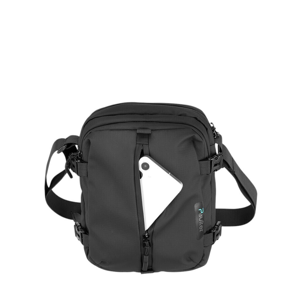 Ανδρική τσάντα της εταιρείας Paulter κατασκευασμένη από ύφασμα σε μαύρο χρώμα. Ιδανική επιλογή για όλες τις ώρες της ημέρας, φοριέται στον ώμο ή χιαστί για μεγαλύτερη άνεση. Ο ιμάντας είναι ρυθμιζόμενος ώστε να προσαρμόζεται στο επιθυμητό ύψος. Το κύριο μέρος της τσάντας κλείνει με φερμουάρ, παρέχοντας ασφάλεια κατά τη μεταφορά των προσωπικών αντικειμένων. Υπάρχει εξωτερική μπροστινή θήκη για την καλύτερη οργάνωση των αντικειμένων.